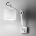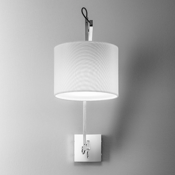 Applique in stile industrial per l’arredamento di casa. Linee semplici ed essenziali che donano un tocco di vitalità a tutto lo spazio. Montatura in metallo regolabile con finitura cromo ed alluminio spazzolato. Paralume in tessuto bianco. Lampadine non incluse.