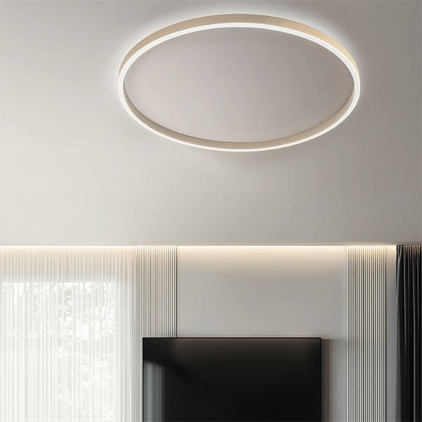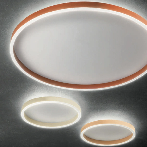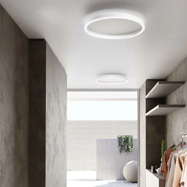 Aela lampada da soffitto biemissione led con montatura in alluminio satinato bianco, nero o oro spazzolato e diffusore in metacrilato bianco opale. Possibilità di scegliere la temperatura della luce (3000°K o 4000°K) prima dell'installazione finale della plafoniera. Questa plafoniera illumina con stile ed eleganza ogni ambiente.