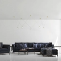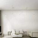 Aladino è una sospensione a 5 luci in vetro borosilicato trasparente esterno e satinato interno con rosone e parti metalliche in oro spazzolato. Questa soluzione si caratterizza per uno stile minimal e moderno, illuminando alla perfezione ampi spazi come il soggiorno della casa o la hall di un hotel. Si presta a tre configurazioni: in linea, in tondo o a 5 luci incrociate.