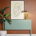 Lampada da tavolo in metallo con base cilindrica. Finitura in oro spazzolato. Paralume superiore in metallo color ruggine. Diffusore in metacrilato opalino. Cavo di alimentazione nero 150 cm. Lampadine installabili 3 x G9 a led dimmerabili. Amanita è una soluzione di design ideale per contesti privati e ricettivi.