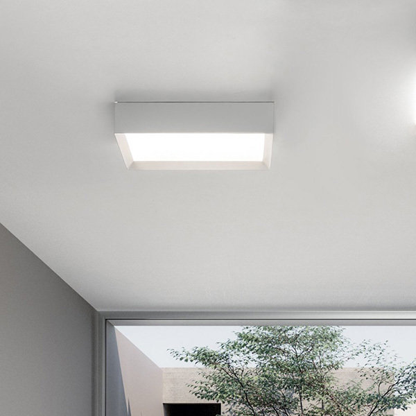 Aoi è una plafoniera di design ideale per arredamenti moderni. Ha una montatura in alluminio satinato bianco o nero, con diffusore in metacrilato bianco opale. Si può scegliere la temperatura della luce (3000°K o 4000°K) prima dell'installazione finale della plafoniera. Sorgente luminosa led.