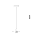 Lampada a sospensione a cono con rosone in metallo verniciato a polveri con chiusura magnetica senza viti. Cavo in pvc e diffusore in alluminio verniciato a polveri con ottica in acrilico. Disponibile nelle finiture: bianco, nero. Archimede è ideale per installazioni in residenze private o strutture ricettive.