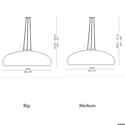 La montatura è in metallo cromato, il diffusore è in vetro bianco soffiato e acidato. I cavi in acciaio sono regolabili in lunghezza grazie a un dispositivo automatico.