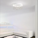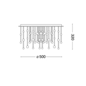 Lampada da soffitto decorativa disponibile in tre versioni con montatura in metallo verniciato opaco. Elementi pendenti in filo metallico con perle di vetro trasparente cromato. Finitura: bianco.