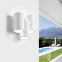 Lampada a parete biemissione con 3 cilindri. Soluzione versatile che può essere tinteggiata grazie alla struttura in gesso. Lampadina installabile alogena, fluorescente o led con attacco G9.