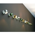 I diffusori sono orientabili, la struttura è metallica in cromo lucido e il faretto sferico è in cristallo al piombo 24%.