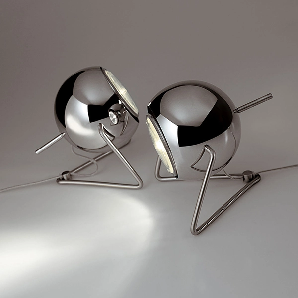 Beluga Steel è una lampada da tavolo moderna e con una forma originale ideale per illuminare diversi spazi: camera da letto, soggiorno e si addice anche a forniture contract di hotel e locali. Il diffusore e la struttura sono in cromo lucido. Il diffusore orientabile utilizza la lampadina alogena o a LED.