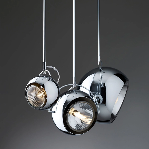 La lampada a sospensione Beluga Steel in questa versione è elegante e raffinata, perfetta per illuminare il tavolo della sala da pranzo o di un ristorante. Ideale anche per creare una luce puntuale sopra i banconi di un bar. Disponibile in tre misure diverse. Struttura e diffusore orientabili in metallo cromato lucido. Il design è di Marc Sadler.