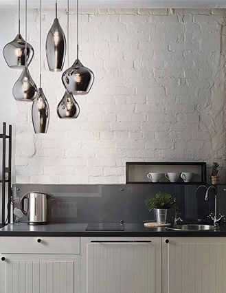 Bergen è una lampada decorativa che illumina con stile ogni ambiente della casa. Noi la consigliamo in particolare nella sala da pranzo e in cucina. Grazie alla sua linea, può essere la scelta giusta anche per illuminare i tavoli di locali e ristoranti. Questa lampada è disponibile in tre varianti ed è perfetta se installata in composizione. Il rosone è in metallo verniciato a polveri di colore nero. La montatura è in legno naturale. Il diffusore è in vetro soffiato trasparente con motivo decorativo in rilievo e finitura fumè. Il cavo rivestito è in tessuto.