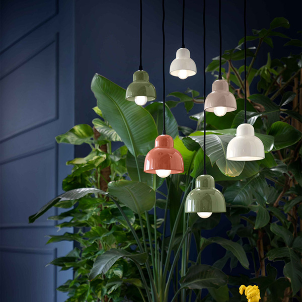 Berimbau scende con eleganza e illumina con una luce puntuale. Da sola o in composizione, si fa notare per forme semplici e colori lucidi. Uno stile pop per questa lampada a sospensione disponibile in sei finiture e in due misure.