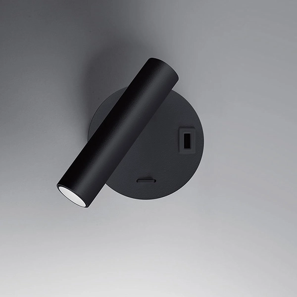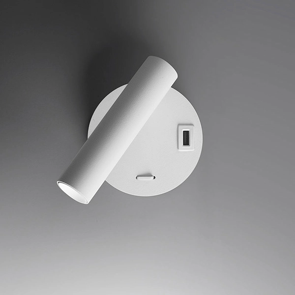 Betu è uno spot a parete orientabile a led consigliato in particolar modo per la lettura. Posizionato vicino al letto trova la sua collocazione ideale. Presenta alla base una presa USB da 2A per la carica dei dispositivi elettronici. Disponibile nelle finiture: bianco, nero e sabbia. Materiale: alluminio. Grado di protezione IP20. Driver incluso.