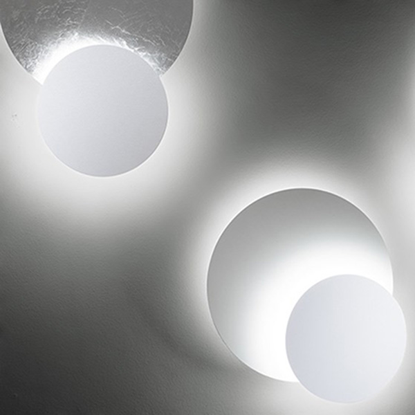 Il disco frontale in metallo verniciato bianco è orientabile e apribile. Il disco posteriore è disponibile in 2 varianti: oro e argento. I circuiti led hanno l'alimentatore integrato.