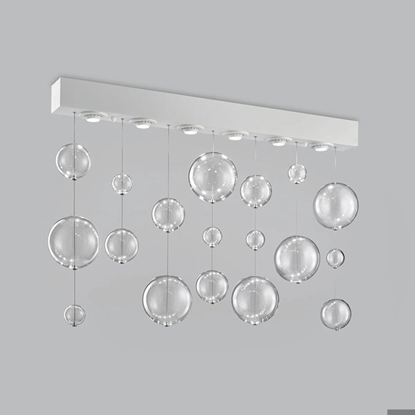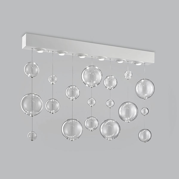Una versione di plafoniera che colpisce al primo sguardo! Bolero è pura eleganza e stile, una lampada perfetta per gli ambienti della casa o di strutture ricettive e locali. Dalla base scendono con eleganza 18 sfere leggere che creano una luce originale e unica. Prodotto Made in Italy. Lampadine escluse. Questa soluzione è disponibile anche in altri colori di design, contattaci per saperne di più!