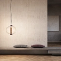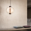 Bolha è una sospensione unica nel suo genere. Impossibile non restare colpiti dal diffusore a forma di sfera trasparente e dal cilindro utilizzato per la sorgente luminosa. Questa soluzione è adatta ad arredamenti moderni e può essere collocata in ogni ambiente portando un tocco di design. Il vetro esterno è realizzato in borosilicato trasparente mentre il diffusore interno è in vetro soffiato color ambra. Struttura in metallo verniciato.