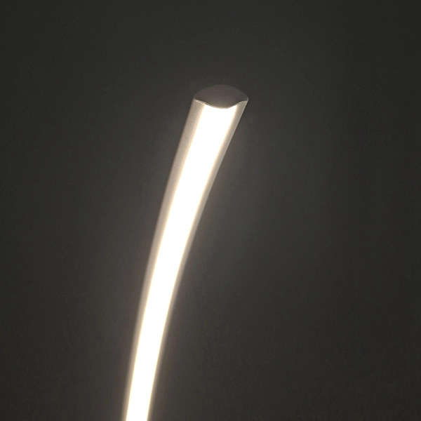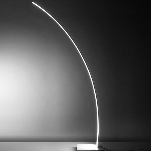 Lampada da terra a led di design per illuminare il soggiorno di abitazioni arredate in stile moderno e contemporaneo. Un arco di luce che crea un’atmosfera calda e accogliente all’interno della casa e che illumina con eleganza tutto l’ambiente. Grazie alla sua forma si addice anche all’illuminazione di strutture ricettive ed esercizi commerciali. Disponibile in bianco, nero e sabbia. Materiali: alluminio + silicone. Driver incluso. Grado di protezione IP20.