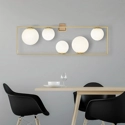 Lampada da parete a 5 luci in oro spazzolato o acciaio spazzolato e particolare in bronzo con vetri sfera soffiati colore opalino. Un articolo che piace per la forma minimal ed essenziale. Un must-have Miloox da acquistare subito!