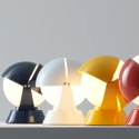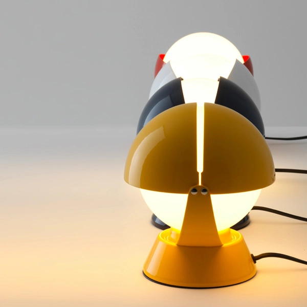 Una sfera magica luminosa, Buonanotte è una lampada regolabile mediante la rotazione di due quartine in metallo che, mosse liberamente sopra il diffusore sferico, ne controllano il fascio luminoso. Con un semplice gesto cambia l’atmosfera: aperta per una buona lettura o chiusa e soffusa, complice dei sogni. Corpo in metallo verniciato nelle finiture bianco, giallo, rosso, blu. Diffusore in vetro duplex, lampadina LED 5W 2700K E14 inclusa. Una fantastica idea regalo!