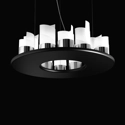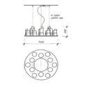 Lampada a sospensione a 12 luci che s'inserisce perfettamente nella zona living della vostra casa o all'interno di strutture alberghiere. Il diffusore in policarbonato satinato è avvolto da particolari in metallo: bianco, nero, nichel satinato, oro satinato e rame satinato.