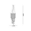 Carlton è un lampadario prezioso di grande eleganza e raffinatezza adatto ad illuminare ampi spazi di case, hotel o ambienti commerciali. La montatura è in metallo cromato o dorato. Elementi decorativi con catene di ottagoni e barre in cristallo molato trasparente.