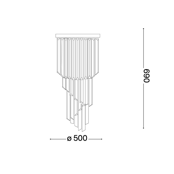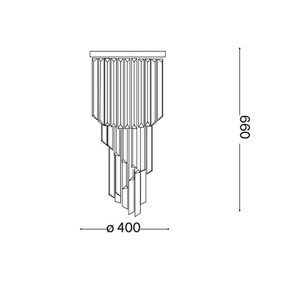 Plafoniera preziosa ed elegante per illuminare ed arredare ambienti privati, ricettivi e commerciali. Montatura in metallo cromato o dorato. Elementi decorativi con catene di ottagoni e barre in cristallo molato trasparente.