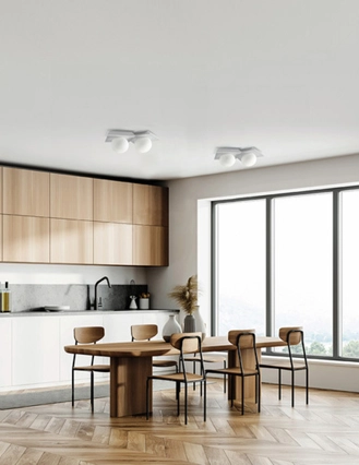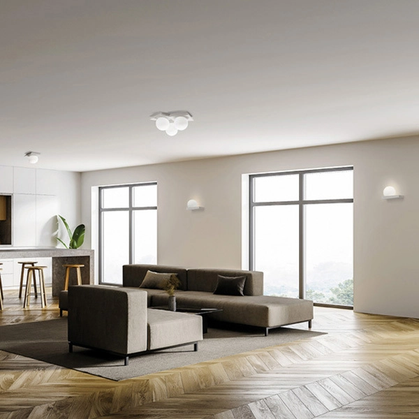 Cicladi è una lampada da soffitto a 3 luci in gesso indurito con diffusori in vetro tondo soffiato. Da sola o in composizione, si adatta a collocazioni in diversi ambienti della casa.
