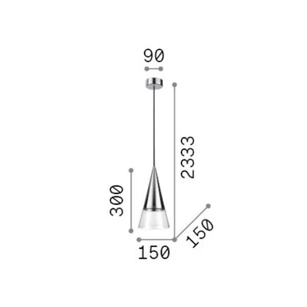 Lampadario moderno con rosone e montatura in metallo placcato. Diffusore in vetro soffiato trasparente. Cavo in pvc. Finiture: cromo e ottone. Lampadine LED GU10 7W 3000 K incluse. Soluzione ideale per illuminare il bancone della cucina.