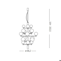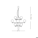 Copernico è un lampadario dalla componente di design che illumina portando un tocco di stile unico nella zona living della casa o nelle grandi sale di un hotel. La montatura è in metallo verniciato opaco con dettagli in ottone, mentre i diffusori sono in vetro incamiciato bianco soffiato e acidato. Lampadine LED G9 3,2 W 3000 K incluse.
