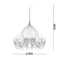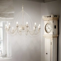 Lampadario scenografico a 12 luci ideale per illuminare ambienti spaziosi di abitazioni private, strutture ricettive o ambienti commerciali. Corte ha una montatura completamente in metallo modellato con lavorazione artigianale e una finitura dipinta a mano con effetto antichizzato. Disponibile nella versione bianca o ruggine.