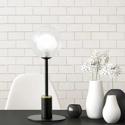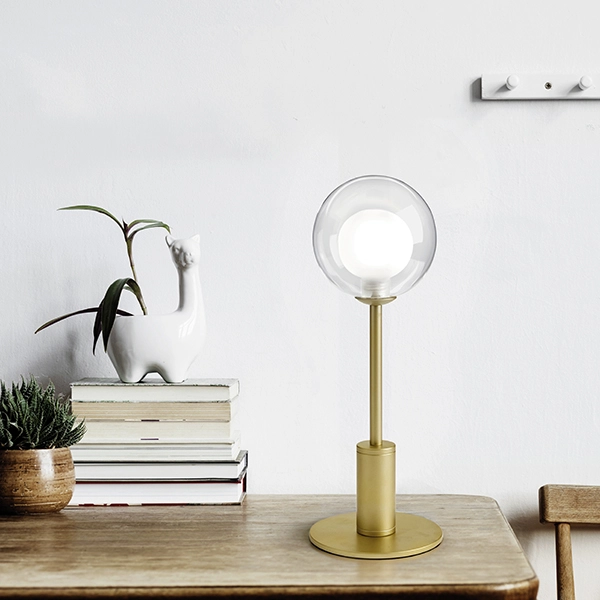 Quando si vuole comprare una lampada da tavolo, si va alla ricerca di linee particolari e d’effetto, per accompagnare una lettura o semplicemente illuminare una determinata zona. Cosmo è la soluzione giusta per incontrare queste necessità, portando una luce elegante e raffinata. Si può posizionare su ogni tavolo di un ambiente residenziale o ricettivo! Il diffusore è realizzato in vetro borosilicato trasparente esterno e satinato interno. La montatura è in metallo verniciato nero con particolare in oro spazzolato . Il design è firmato Davide Negri.