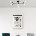 Cosmo è una plafoniera a 6 luci moderna che illumina con uno stile unico ogni stanza in cui viene inserita, dalla zona living alla zona notte della casa fino agli ambienti di un hotel o di un negozio. I diffusori sono realizzati in vetro borosilicato trasparente esterno e satinato interno. La montatura è in metallo verniciato nero con particolare in oro spazzolato. Il design è firmato Davide Negri.