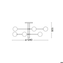 Plafoniera moderna con una montatura in metallo rifinito con vernice opaca. I diffusori sono in vetro soffiato bianco acidato. Cosmopolitan è disponibile in nero con dettagli ottone satinato. Lampadine LED G9 3W 3000 K incluse.