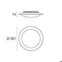 La montatura è in metallo verniciato ed è disponibile nelle varianti bianco raggrinzante, ferro e brunito spazzolato. Il diffusore è in polimetilmetacrilato.
