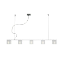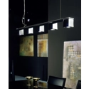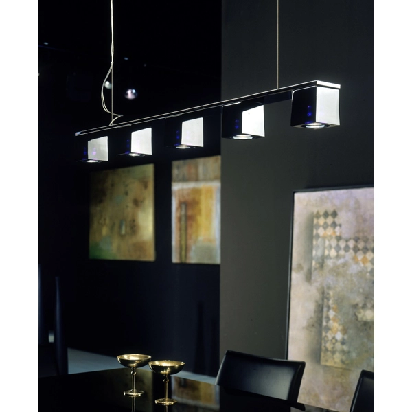 Diffusori di vetro in pasta bianca e nera, sabbiati internamente. Strutture metalliche in cromo lucido.