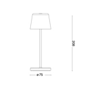 Sorgente luminosa LED 2200 K / 2700 K, 50.000 h di durata. Interruttore integrato, dimmer tattile. Batteria ricaricabile inclusa.