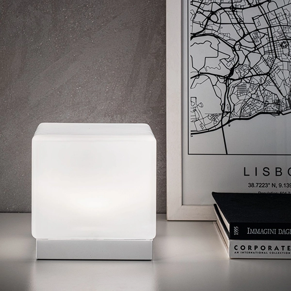 Dado nella versione da tavolo è perfetta per illuminare con particolarità la stanza da letto di grandi e piccoli. La collezione Dado ha un particolare sistema di fissaggio a magneti che oltre a semplificare le installazioni è anche molto pratico per la manutenzione ordinaria. E' formata da vetro soffiato triplex opale satinato.