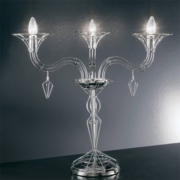 Dedalo è una collezione di lampade Metal Lux che riprende le volute eleganti del lampadario veneziano. Questa lampada da tavolo ha uno stile classico-moderno ed è disponibile in 4 finiture. La struttura è in metallo. Ideale in diversi ambienti della casa o all'interno di strutture ricettive.