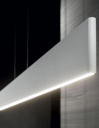 Lampada a parete estremamente elegante e minimal, adatta ad illuminare ambienti come uffici e studi. Il corpo luce è in alluminio verniciato a polveri con finitura bianca o nera. Diffusori in acrilico satinato. Emissione luce sopra e sotto. Perfetta se abbinata alla versione a sospensione.