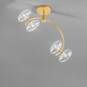 Plafoniera in metallo e corpo luce in vetro trasparente, perfetta per illuminare la zona giorno.