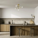 Linee e sfere si incrociano in Dom, una lampada firmata Miloox adatta per arredamenti moderni e contemporanei. Si riconosce subito un elemento di tendenza, la montatura in ottone spazzolato, che si combina con i diffusori in vetro borosilicato trasparente e cilindro satinato.