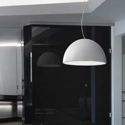 Lampada a sospensione dalla forma a cupola con montatura e diffusore in metallo rifinito con vernice bianca opaca all'esterno e lucida all'interno. Soluzione perfetta per illuminare le sale di un ristorante/locale oppure la zona living della casa. Disponibile in due versioni, è un articolo must-have del brand Ideal Lux.