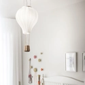 Dream big = sogna in grande. Questa sospensione è dedicata alla cameretta dei più piccoli. Una forma originale e due dimensioni per una soluzione unica nel suo genere. Il rosone è in metallo verniciato bianco opaco. Il cavo è in tessuto. Il diffusore è in vetro soffiato bianco acidato. Il cesto è in corda.