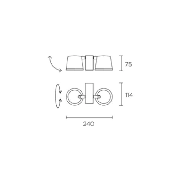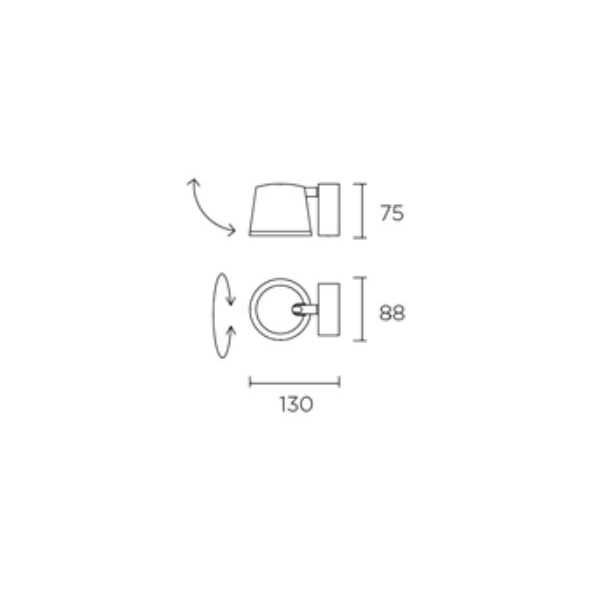 Il corpo luce è in alluminio disponibile in due finiture, ed è orientabile fino a 355°, per il massimo del comfort.