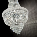 Dubai è un lampadario scenografico che si fa immediatamente notare per il suo design ricercato. Ideale per ampi spazi di ambienti residenziali o ricettivi. La montatura è in metallo cromato o in ottone, mentre gli elementi decorativi con perle, ottagoni e prismi sono in cristallo molato trasparente.