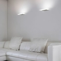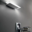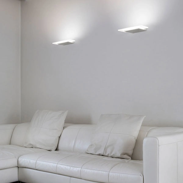 Applique dalle linee minimali e eleganti con sorgente LED a emissione indiretta. Il diffusore è in PMMA satintato, la montatura in metallo verniciato bianco raggrinzante.