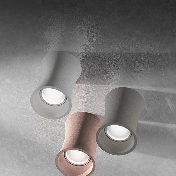 Plafoniera essenziale e moderna con una montatura in cemento e una forma cilindrica ammorbidita ai fianchi. Duna è realizzata con un ricercato composto cementizio in colori che richiamano la terra quali il granito grigio chiaro o grigio scuro e la pietra rossa. Può essere collocata in diversi ambienti della casa o di locali, hotel e spazi commerciali. Lampadina non inclusa.