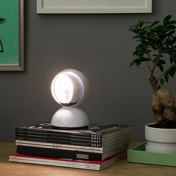 Eclisse rappresenta il design italiano. Alla base di questa lampada c'è la funzionalità, con la regolazione dell'intensità della luce attraverso il paralume interno rotante che "eclissa" la sorgente luminosa. Grazie ad un involucro esterno fisso e un involucro interno mobile, la lampada può fornire luce diretta o diffusa. Può essere montata anche a parete. Corpo in metallo verniciato disponibile nei colori bianco, rosso, arancione o giallo e in versione PVD, realizzate con un innovativo e sostenibile processo di deposizione sottovuoto di metallo (“sputtering”), disponibile in nero, ottone, rame o mirror.