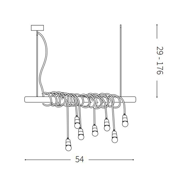 Lampadario vintage a 8 luci ideale per arredamenti dallo stile industriale. La montatura è in metallo rifinito corten, il cavo è in tessuto. Il portalampade è in ceramica smaltata. I cavi in acciaio sono a lunghezza regolabile. Soluzione ideale per ampie zone living o per forniture contract di locali, bar, ristoranti, hotel.