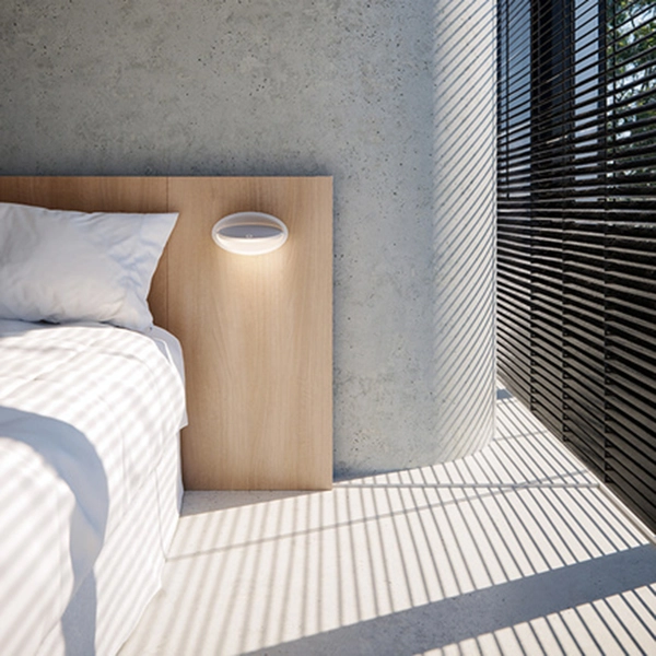 Il classico testa letto o applique da parete cambia veste con Ely! Questa soluzione di design di Luca Turrini porta una luce innovativa e versatile, sia in camera da letto, sia nelle stanze di un albergo. La forma ellittica permette un movimento fluido dello schermo e dell'asse creando diversi effetti luminosi. Disponibile in bianco con pulsante, questa applique può essere installata verticalmente o orizzontalmente.
