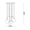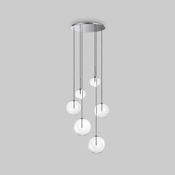 Equinoxe è una sospensione di design a 6 luci. Scende con stile ed eleganza per illuminare diversi ambienti della casa. Suggeriamo questa soluzione anche per hotel e locali. Montatura in metallo con finitura cromo o ottone antico. Diffusori in vetro soffiato trasparente. Lampadine LED G4 2W 3000 K incluse.