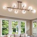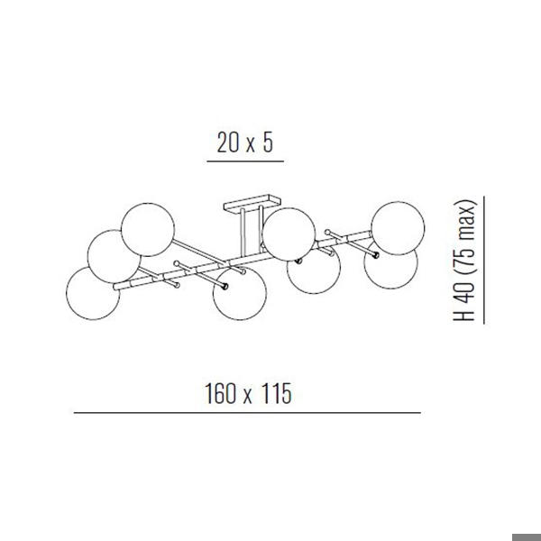 Plafoniera di tendenza in brunito verniciato che impreziosisce la zona living della casa. Illumina con stile ed eleganza grazie alle linee minimal e moderne. I diffusori sferici sono in vetro trasparente.